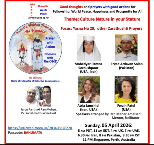 HONORING ASHO ZARATHUSHTRA WITH THE SPECIAL THEME OF CULTURE NATURE IN YOUR STATURE Focus: Yasna Ha 29 & OTHER ZARATHUSHTI PRAYERS Do Join