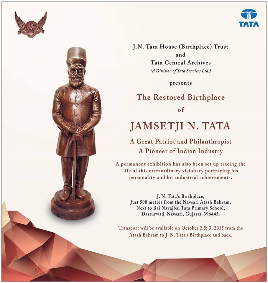 The Restored Birthplace of JAMSETJI N. TATA in Navsari, with a permanent exhibition on the life of the late pioneer of Indian industry, awaits you.