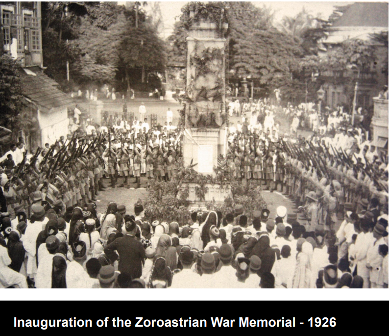 Parsis, many hailing from Bombay, served as soldiers in Europe during World War I. A stone cenotaph at Hughes Road at Kharegat Parsi Colony commemorates the 46 known Parsi soldiers killed in action in that war in Europe.