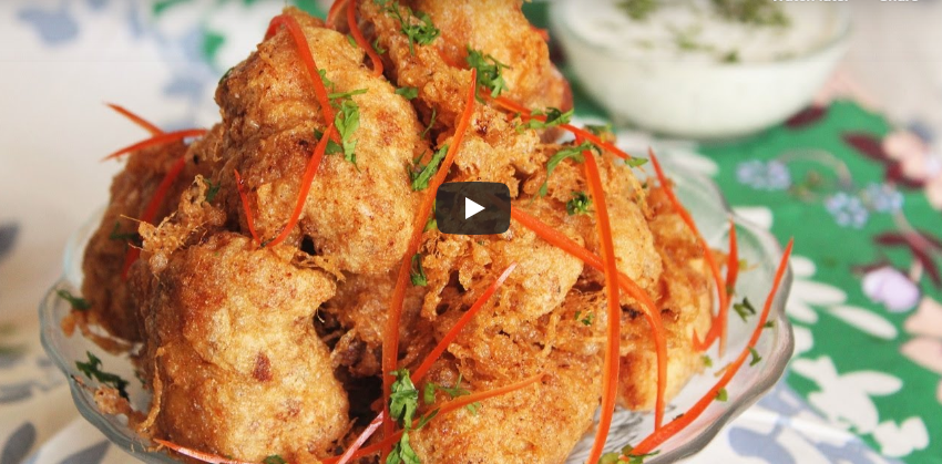 Recipe Ingredients : Cubed chicken breast β 500 g Yoghurt/Dahi β 2 tbsp Dhana jeera powder β 1 tbsp Chilli powder β 1 tbsp Haldi powder β 1 tsp Ginger garlic paste β 1 tbsp Salt and pepper β to taste Semolina/rava β 100g Eggs β 2 pcs