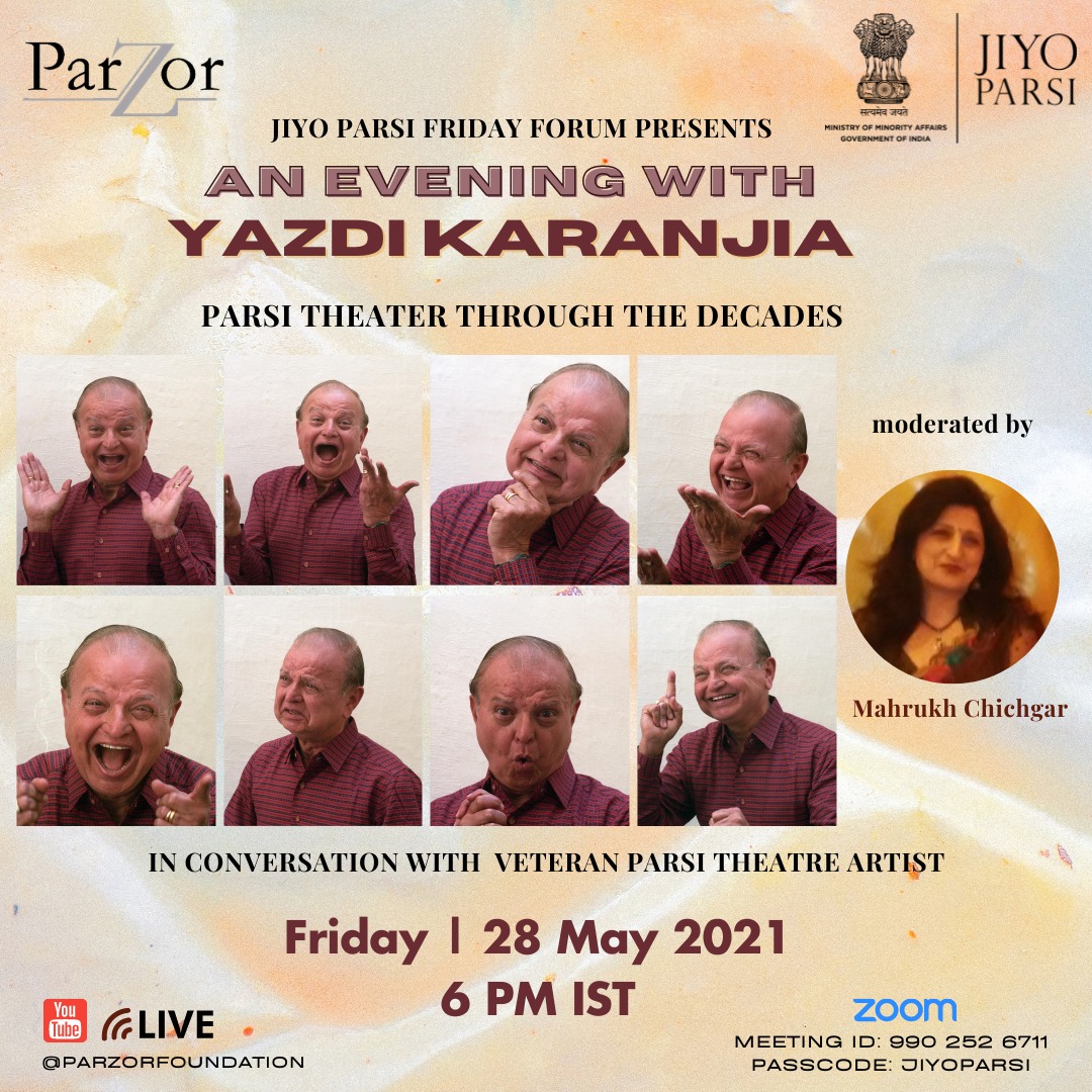 Jiyo Parsi Friday Forum – An Evening with Yazdi Karanjia; 28 May 6 pm IST onwards