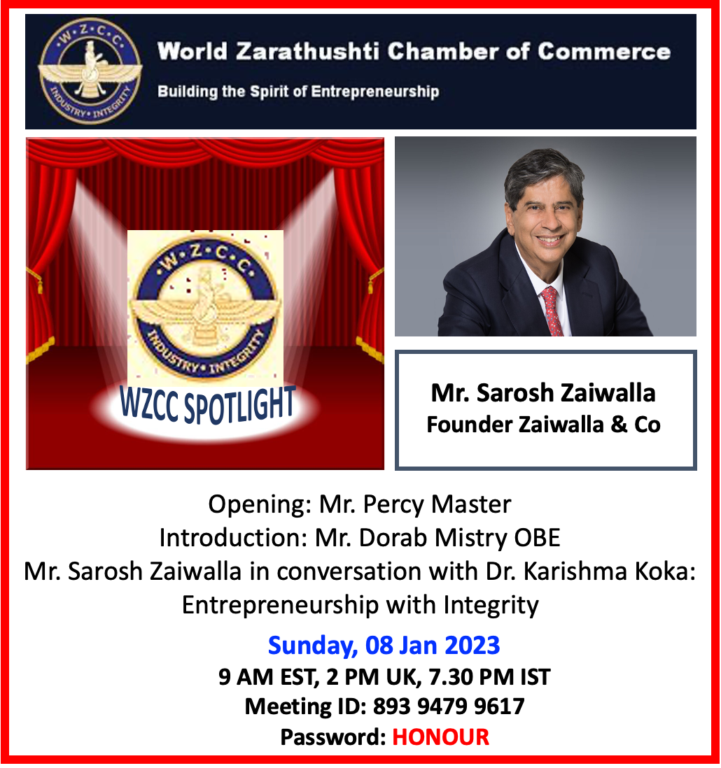 ‘‘The Zoroastrian Legacy’ where he discussed his inspiration from Zoroastrian values towards ‘One World and One Humanity’.