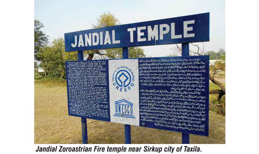 n the way to Khanpur, the road connects Grand Trunk Road to Julian Buddhist Monastery by passing through ancient wonders of Taxila. Jandial retains its name in the locals’ memory as the first village of the province of Khyber Pakhtunkhwa. However, its most well-known site in the world, a Zoroastrian temple, remains distant from both local publicity and historical consciousness.
