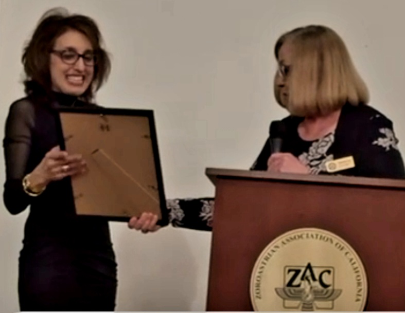 - A Plaque titled “Recognizing the important Contributions of Zoroastrianism to History and Civilization” was presented to ZAC president M/s Rooky Fitter at ZAC’s Nowruz function on March 22nd
