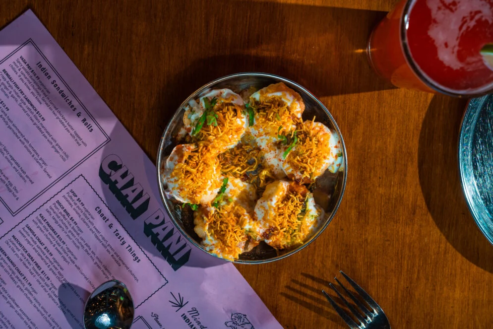 Chai Pani, like its Southern counterparts, will serve traditional, non-Westernized Indian street food like sev potato dahi puri, vada pav, and bhel puri, and original Southern-inflected inventions like crispy okra fries, kale pakoras, and the “sloppy jai” sandwich, made with spiced lamb. With Bhatt leading its kitchen, the new Chai Pani will also focus a bit more on snacks from his native Gujarat, and on Mid-Atlantic ingredients.