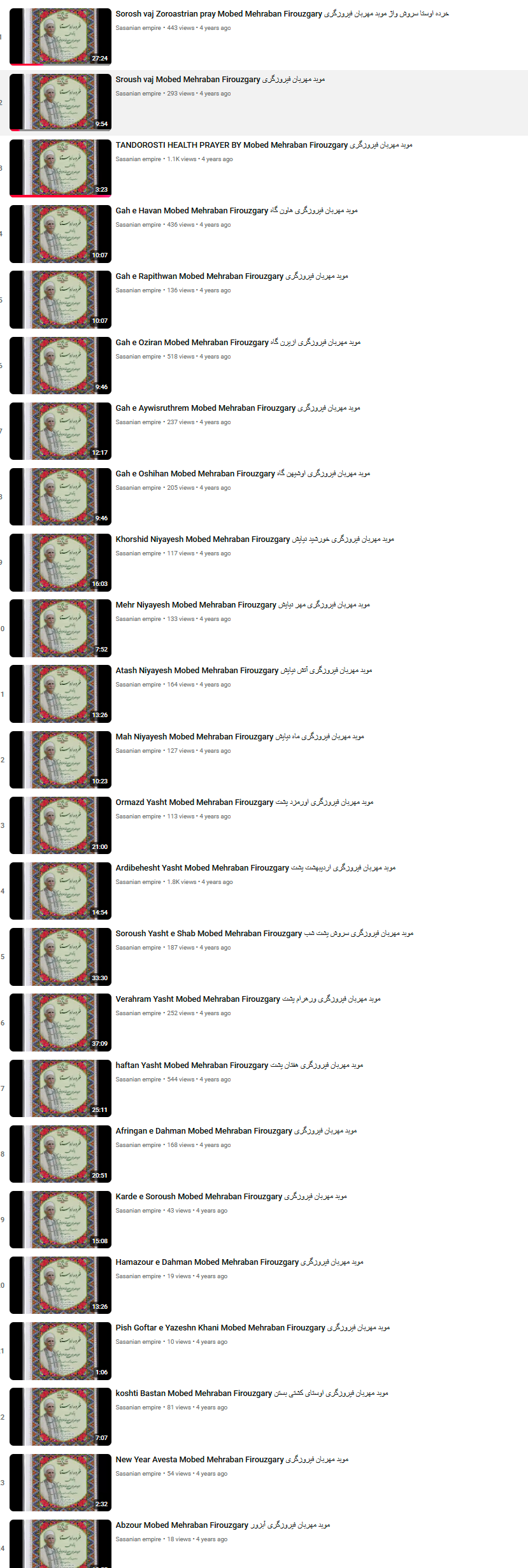 YouTube Playlist of Zoroastrian Prayers – Mehraban Firouzgary