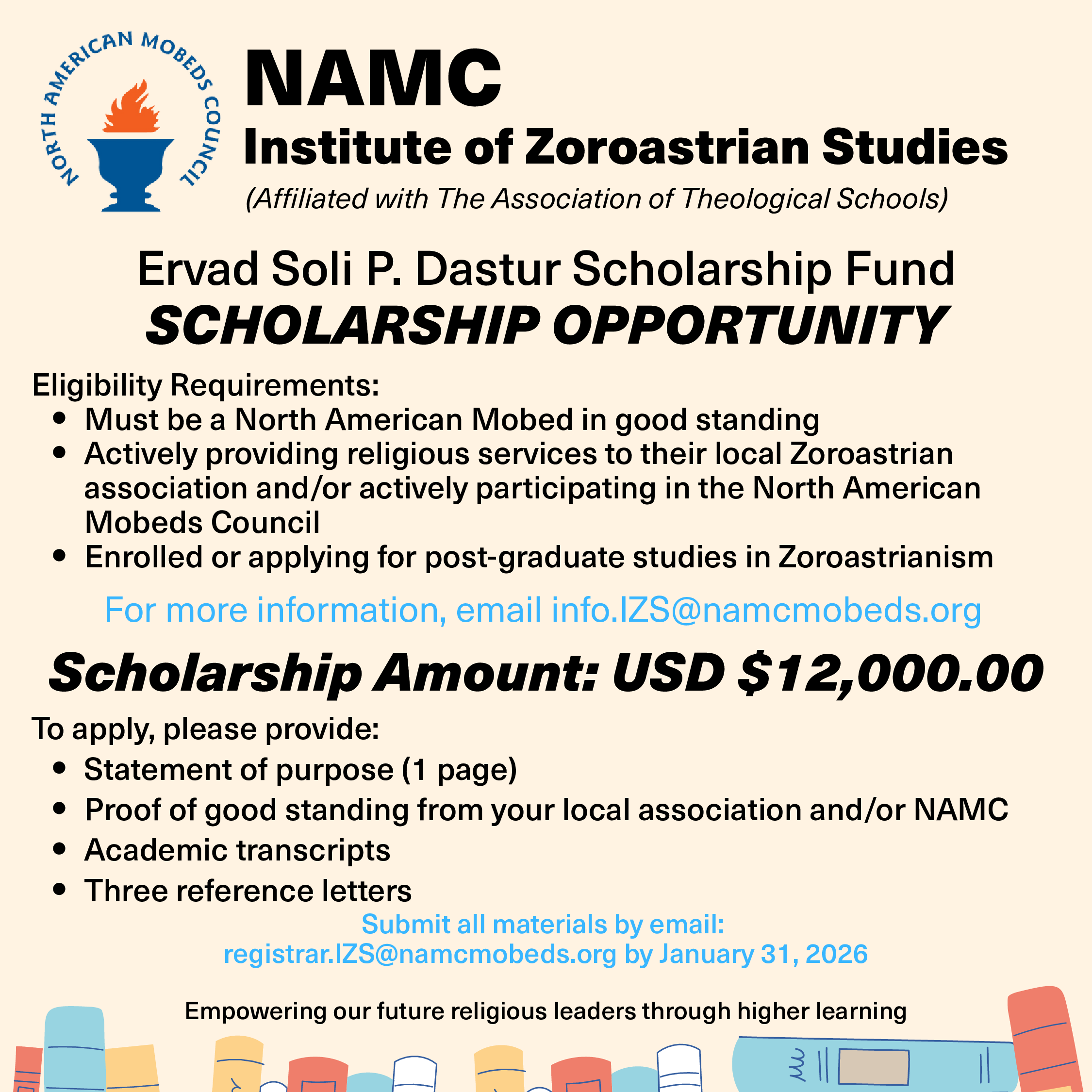 We urge young North American Mobeds to take advantage of this scholarship opportunity.
